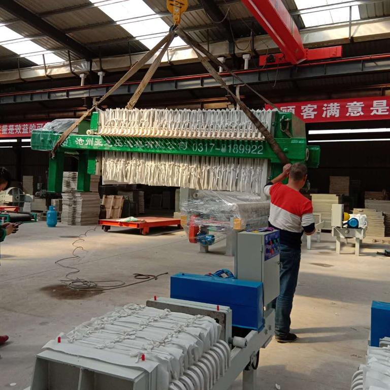 板框壓濾機對于濾渣壓縮性大或近于不可壓縮的懸浮液都能適用。適合的懸浮液的固體顆粒濃度一般為10%以下,操作壓力一般為0.3~1.6兆帕,特殊的可達3兆帕或_高。過濾面積可以隨所用的板框數(shù)目增減。板框通常為正方形,濾框的內(nèi)邊長為 200~2000毫米,框厚為16~80毫米,過濾面積為1~1200㎡。板與框用手動螺旋、電動螺旋和液壓等方式壓緊。板和框用木材、鑄鐵、鑄鋼、不銹鋼、聚丙烯和橡膠等材料制造。